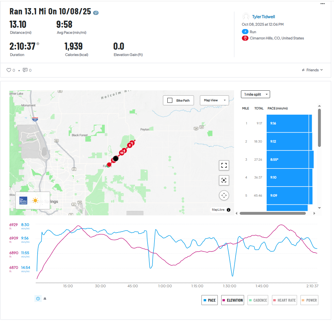 - Tyelr Tidwell (Colorado Springs, CO) completed The Striding Dead Half Marathon in 2:10:37